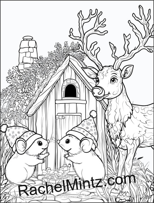 • Cute Mice Christmas Party - Cozy Festive Winter Scenes Coloring PDF Book