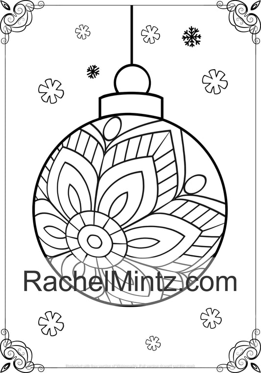 • 50 Large Print Ornaments Coloring Book For Adults, Easy Christmas Tree Decorations to Color (Digital Book)