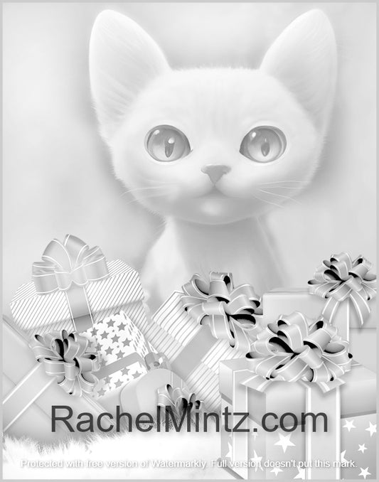 • Furry Christmas Friends Coloring Book - Grayscale Noel Art Designs With Cute Kittens & Friends (PDF Book)