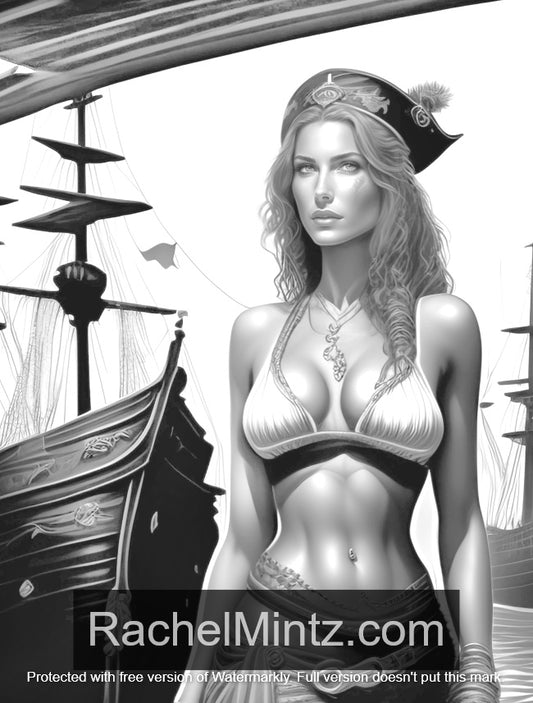 Sexy Pirates - Grayscale Gorgeous Women Pirates, Luscious Sailors, AI Art Designs (Printable PDF Book)