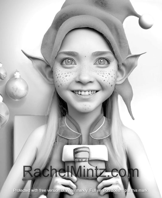 The Cutest Elves - Adorable Grayscale Elf Girls, Whimsical Santa's Helpers for Christmas (Digital PDF Book)