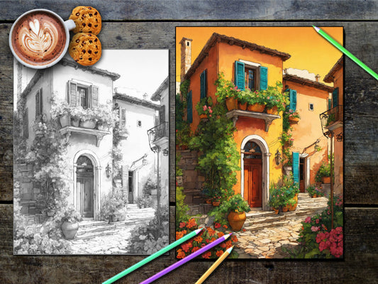 Romance in Tuscany - Romantic Landscapes, Honeymoon Vacation Coloring (PDF Book)