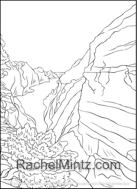 Great Outdoors Landscapes, PDF Coloring Book: Wild Nature, Grand Canyon, Mountains, Desert Wilderness and Wildlife