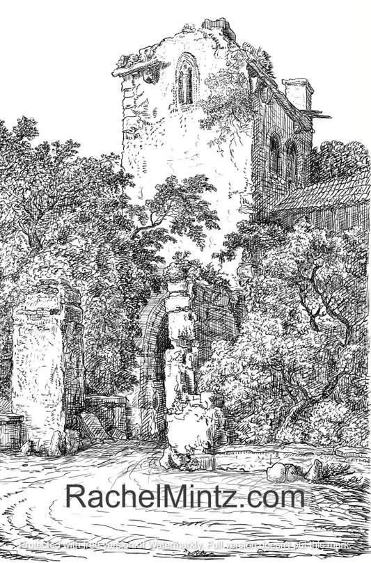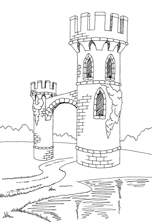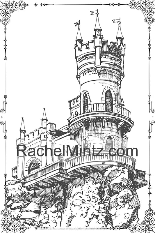Castles & Fortresses - Grayscale Sketches, Gothic Architecture, Fairy Tale Castles, Medieval Palaces - Printable Coloring Book