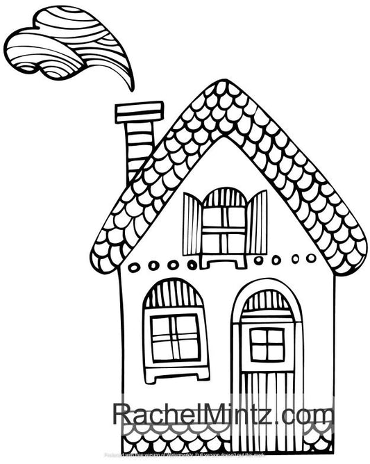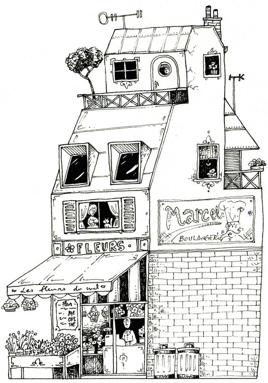 French Houses - Naive Retro Architecture, PDF Coloring Book
