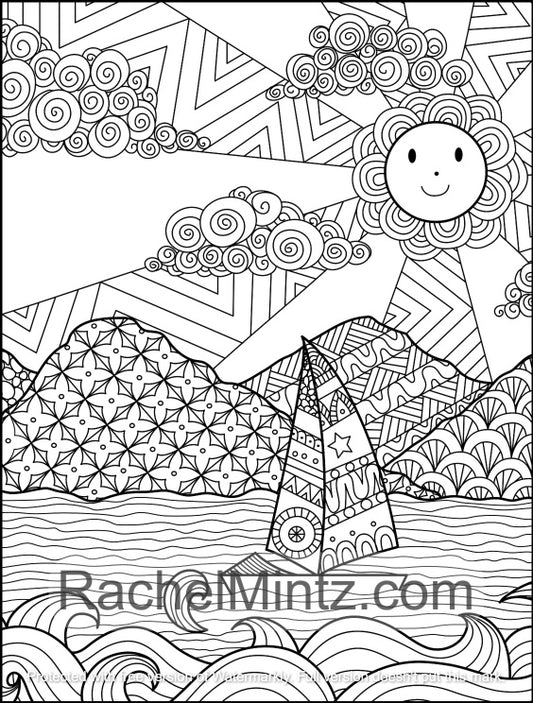 Freedom - Detailed Outdoors Doodle Landscapes, PDF Coloring Book