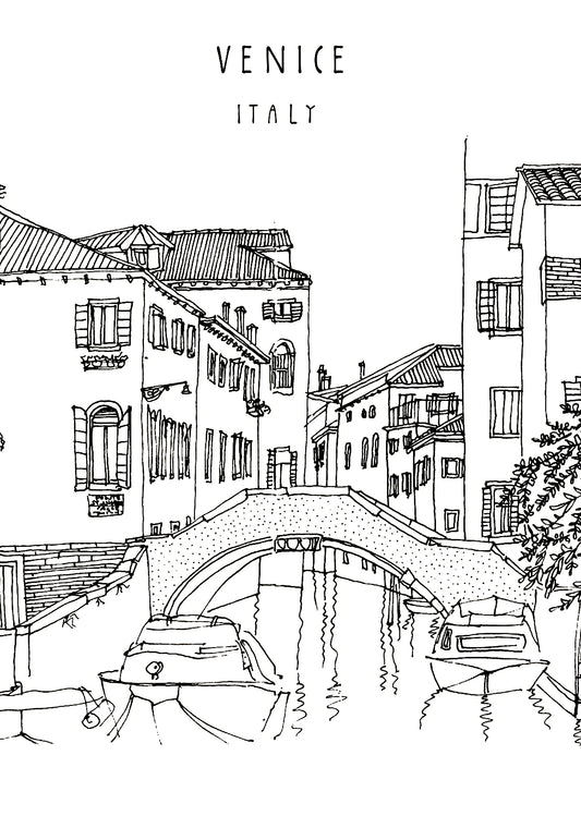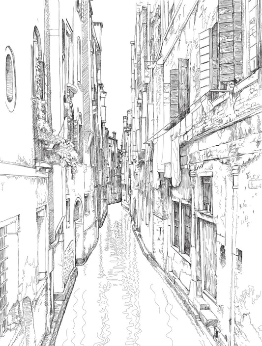 Venice Moments - Coloring (PDF Book) With Romantic Canals, Renaissance Architecture & Gondolas