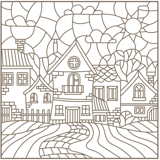 Stained Glass Art Scenic Landscapes, Mosaic Ocean, Picturesque Castles & Ships PDF Coloring Book