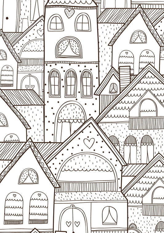 Creative Houses - Detailed Architecture Buildings Patterns, PDF Coloring Book