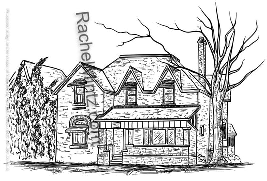 Countryside Houses - PDF Coloring Book For Adults - Grayscale 50 Pastoral Village Landscape Sketches