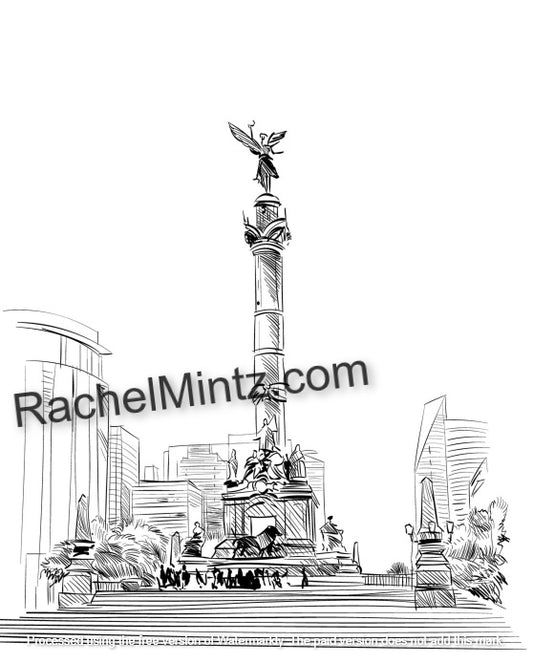 European City - Buildings & Public Places in 3D Perspective View, Urban Architecture PDF Coloring Book