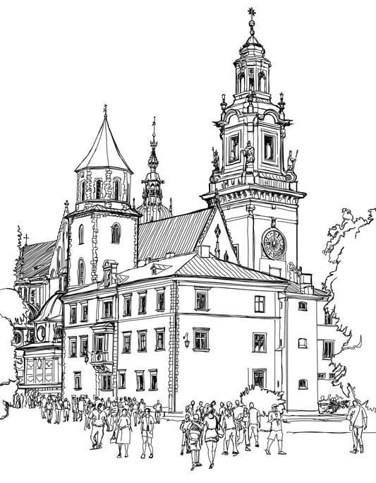 Krakow Beauty - Coloring (PDF Book) With Architecture, Landmarks & Monuments Sketches