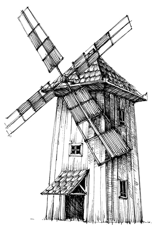 Windmills - Dutch Mills & Windmill Landscapes Grayscale Art Sketches, Coloring (PDF Book)