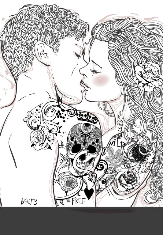 The Lovers Kiss - Romantic Hugging & Kissing - Valentines Day Coloring (PDF Book)