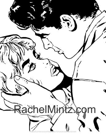 The Lovers - Pop Art Comics Coloring Book, Retro Style Women and Men Kissing (Digital Format Book)