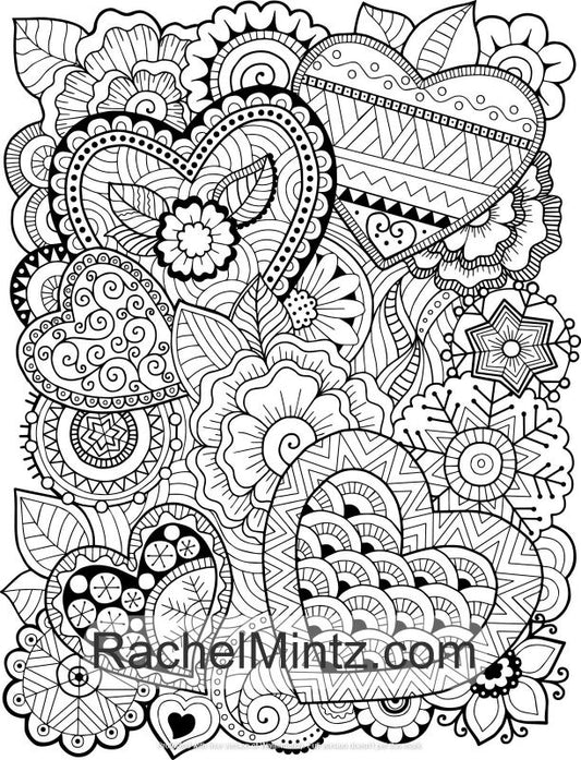 Hearts of Zen - Relaxing Detailed Coloring Book, Intricate Heart Designs (Digital PDF Format)