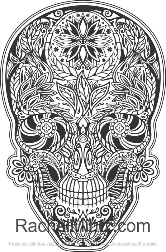 Mexican Skulls Coloring (PDF Book) - Sugar Skulls, Day of The Dead Designs