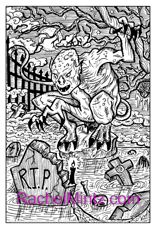 Graveyard Horror Creatures - 50 Hand Drawn Demons, Tombs, Monster Zombie Freaks - Halloween PDF Book
