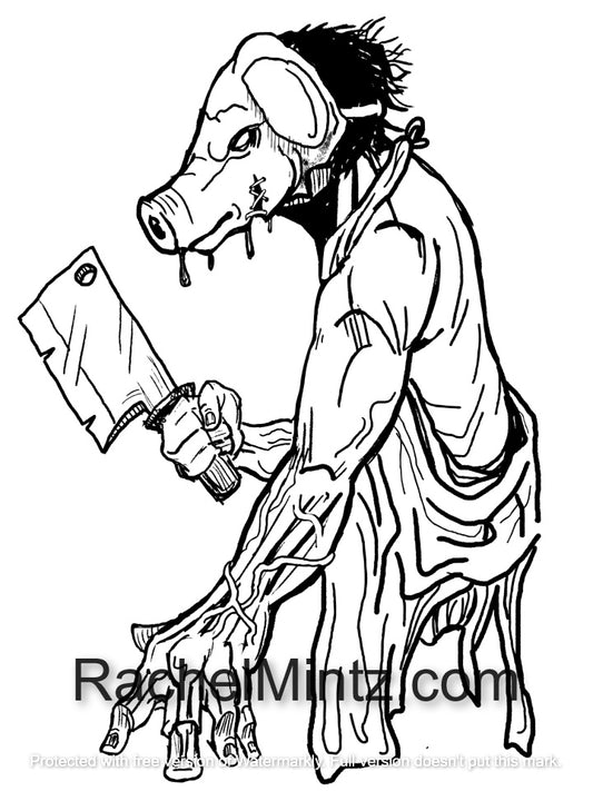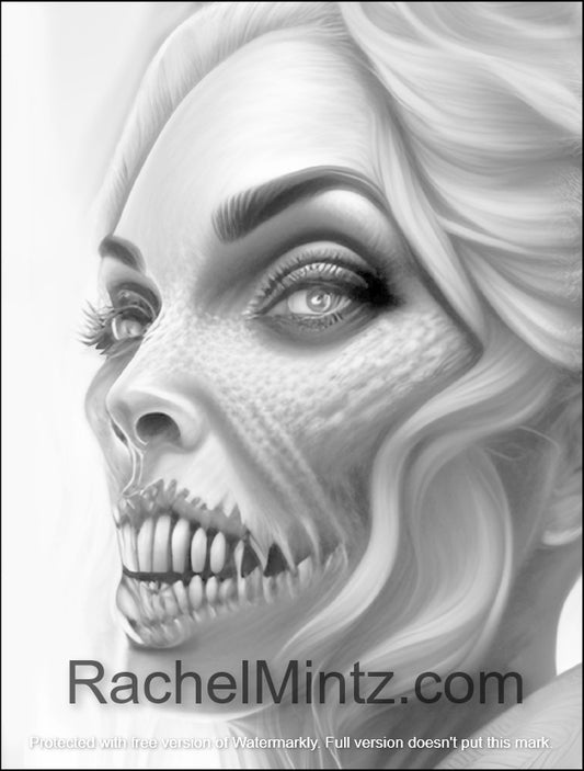 Faces of Horror - Grayscale Monsters, Zombies, Mutants, Demons - PDF Coloring Book